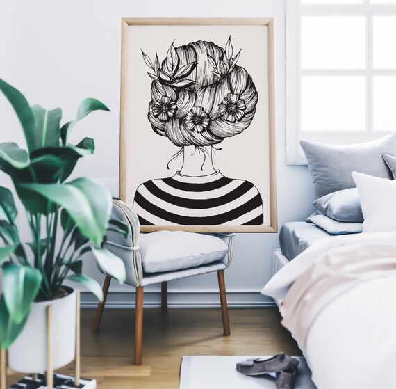 Floral Hair Print Tumblr Wall Art Aesthetic Wall Art Affirmation Collage Art Relax Art Print Line Art Wall Art Grunge Wall Decor