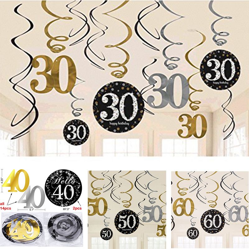 Glitter 30 40 50 60 Th Birthday Hanging Swirls Decorations Foil Danglers Spiral Adults Birthday Anniversary Party Decorations 30th Birthday Party