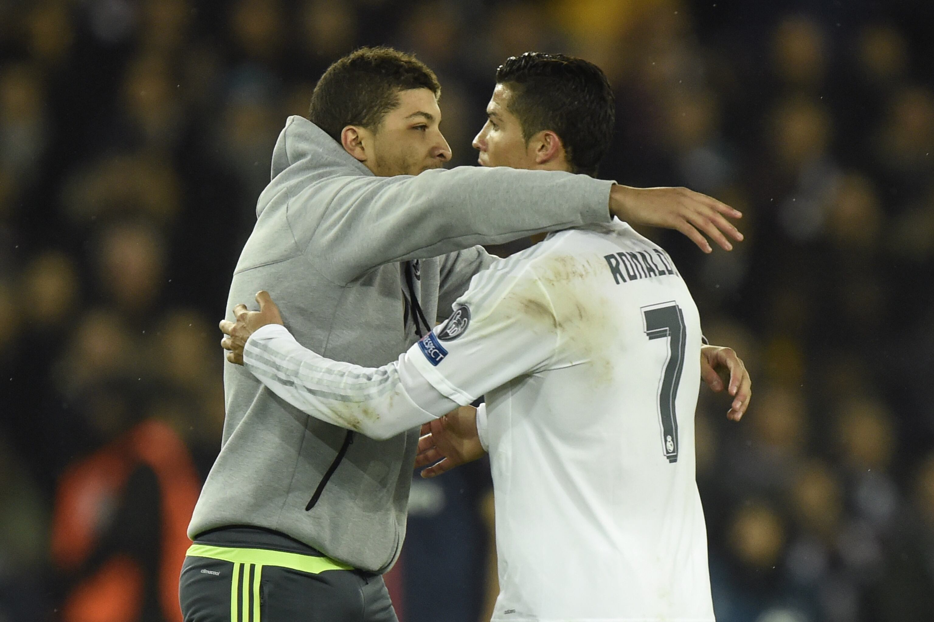 Cristiano Ronaldo Hugs Pitch Invader During Real Madrid 0 0